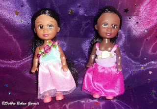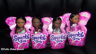 I bought four of those little Sparkle Girlz last week. I have never seen a Kelly as dark as the ones with the darker skin tone so I was especially pleased to get them. I showed them to a friend who suggested it would be cute to decorate a Christmas tree with these little dolls. If I were into Christmas decorations that would have been the perfect excuse to go back and buy two dozen!