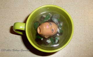 Kayla's boil perm was inspired by the My Froggy Stuff video, "How to Curl a Doll's Hair." As seen in the video below, I never dip a doll's head into a pan of boiling water. I always boil water in a tea kettle and pour just enough of it into a coffee cup or mug before the head is submerged. Instead of single twisting, also seen in the video, I double-strand twisted Kayla's hair before rolling.