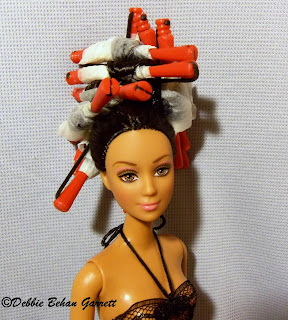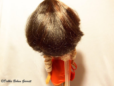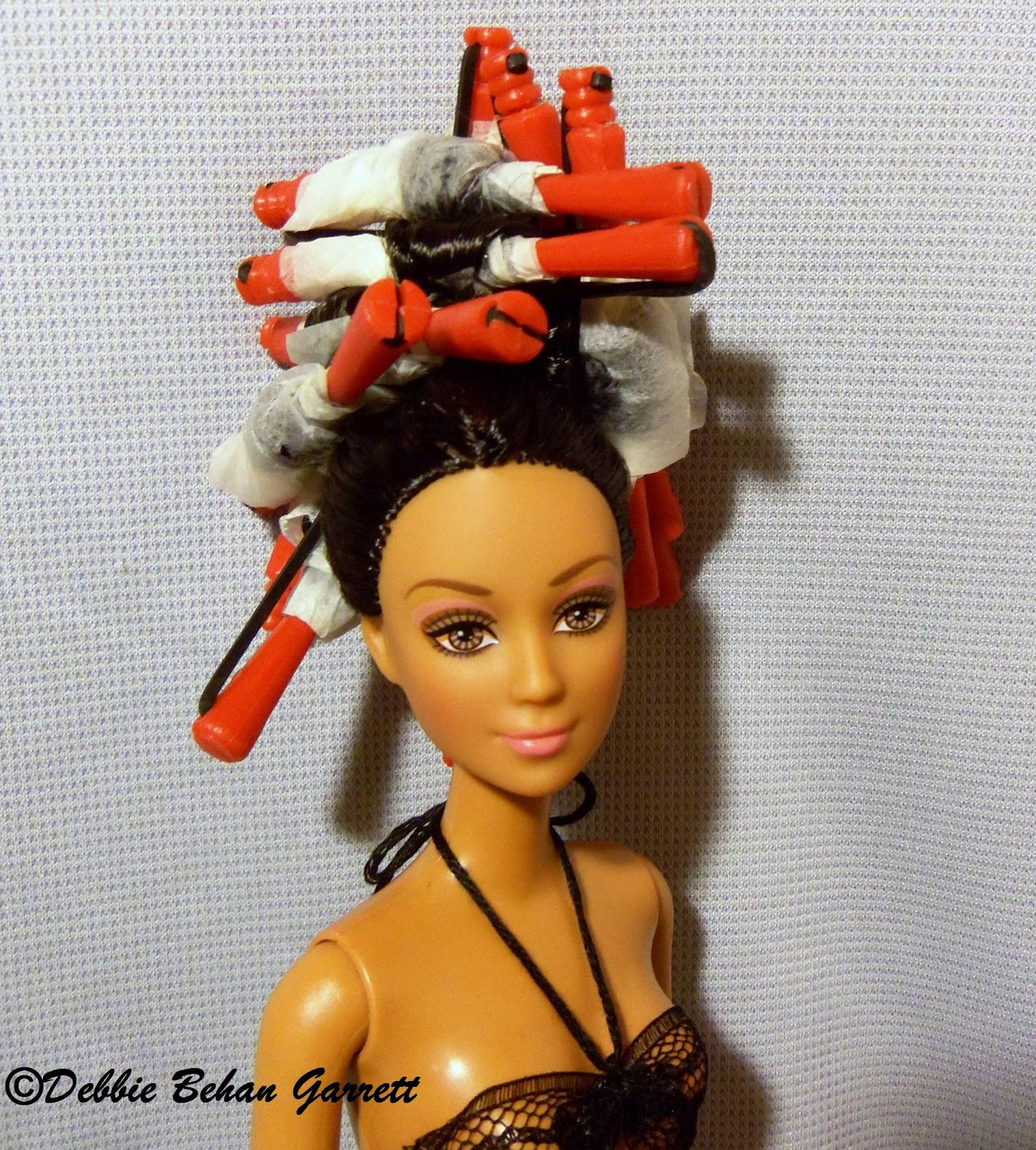 Kayla's boil perm was inspired by the My Froggy Stuff video, "How to Curl a Doll's Hair." As seen in the video below, I never dip a doll's head into a pan of boiling water. I always boil water in a tea kettle and pour just enough of it into a coffee cup or mug before the head is submerged. Instead of single twisting, also seen in the video, I double-strand twisted Kayla's hair before rolling.