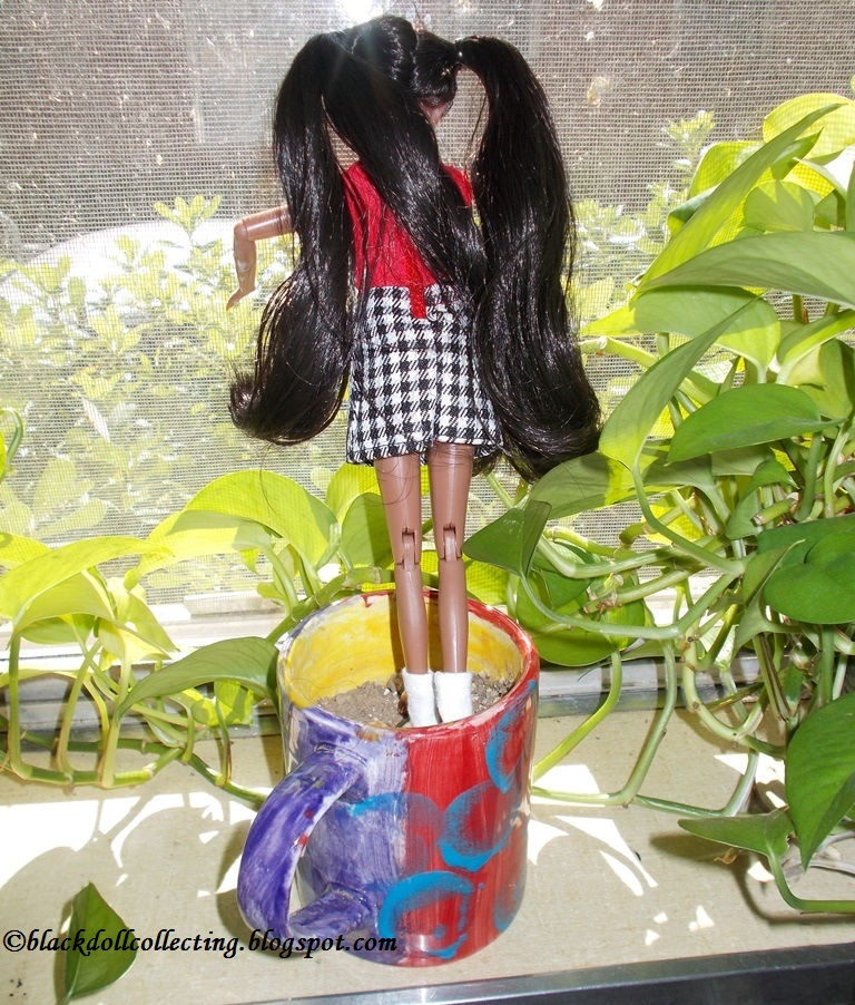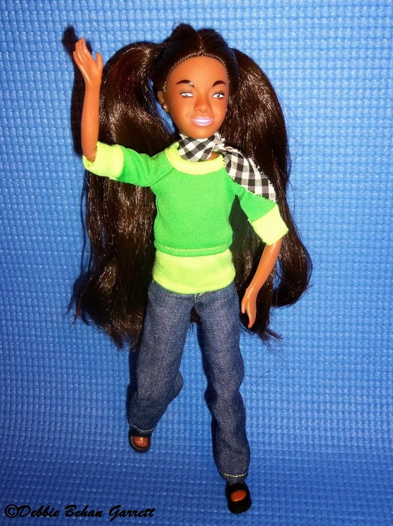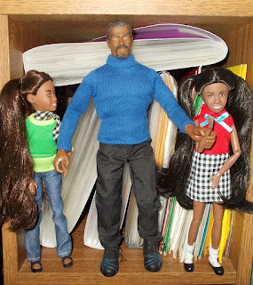 With stain-free arms and hands, Keyshia has now rejoined her sister and father on the cubbyhole of my personal desk where they are usually displayed. (Special Day Keyshia is elsewhere in the doll room.)