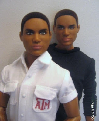 Cynthia and I agree that Aggie Ken appears to have a wider face with darker hair. Cynthia also thinks the articulated doll's top lip is fuller. (He's from Texas and we all know that things are bigger in Texas.)