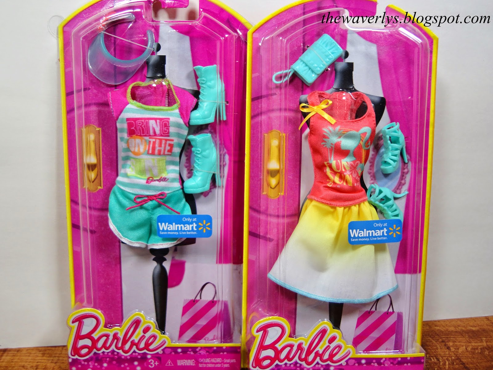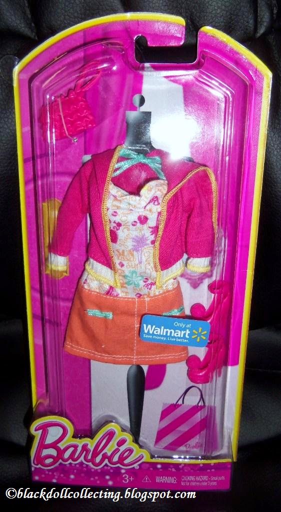 A quick visit to Walmart for three things led me to the doll aisles where I found the above Only at Walmart Barbie fashion. It includes a halter dress, pink hooded jacket, pink handbag and matching high-heels. What looks like a shopping bag is part of the card graphics.