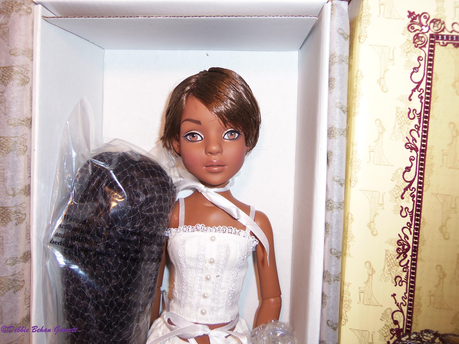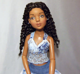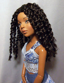Lovely doll, but reality certainly sets in after dolls ordered based on their prototype images arrive. Before I removed the black wig from the plastic, I fell in love with Lizette's short brown, boy-cut wig. Before she arrived, I just knew I'd love her black natural-textured wig better.