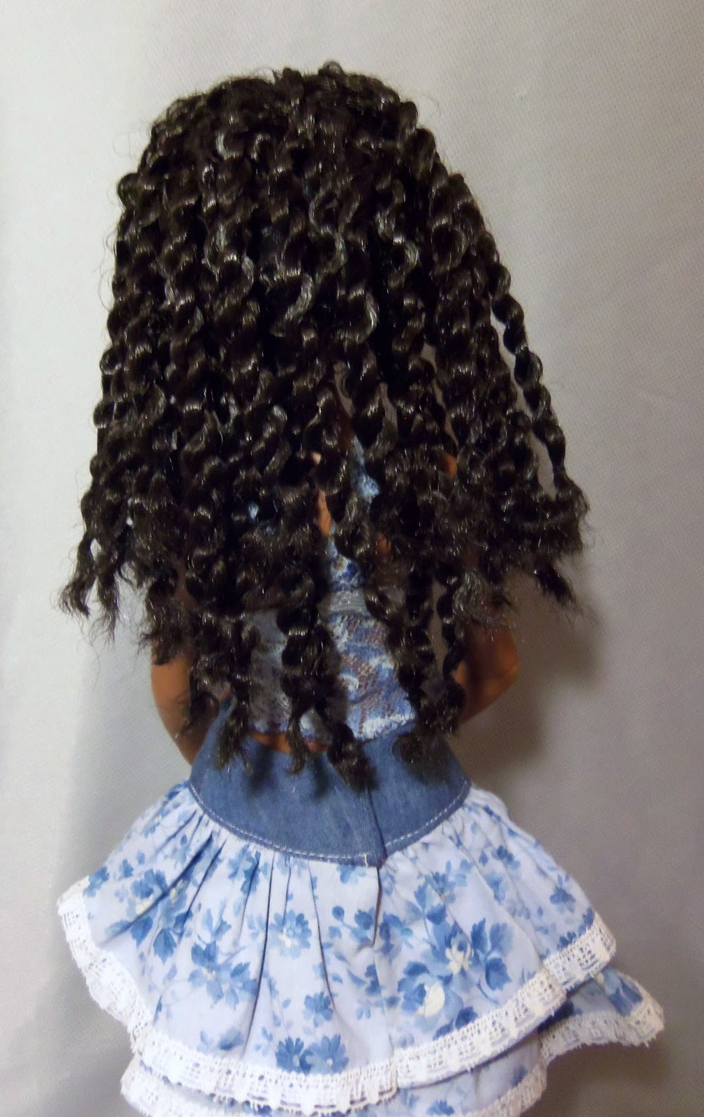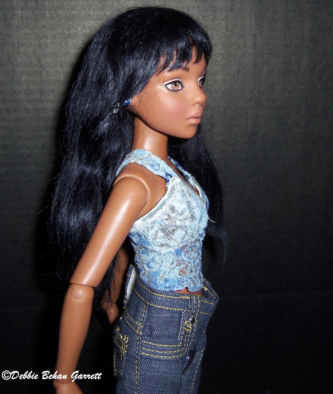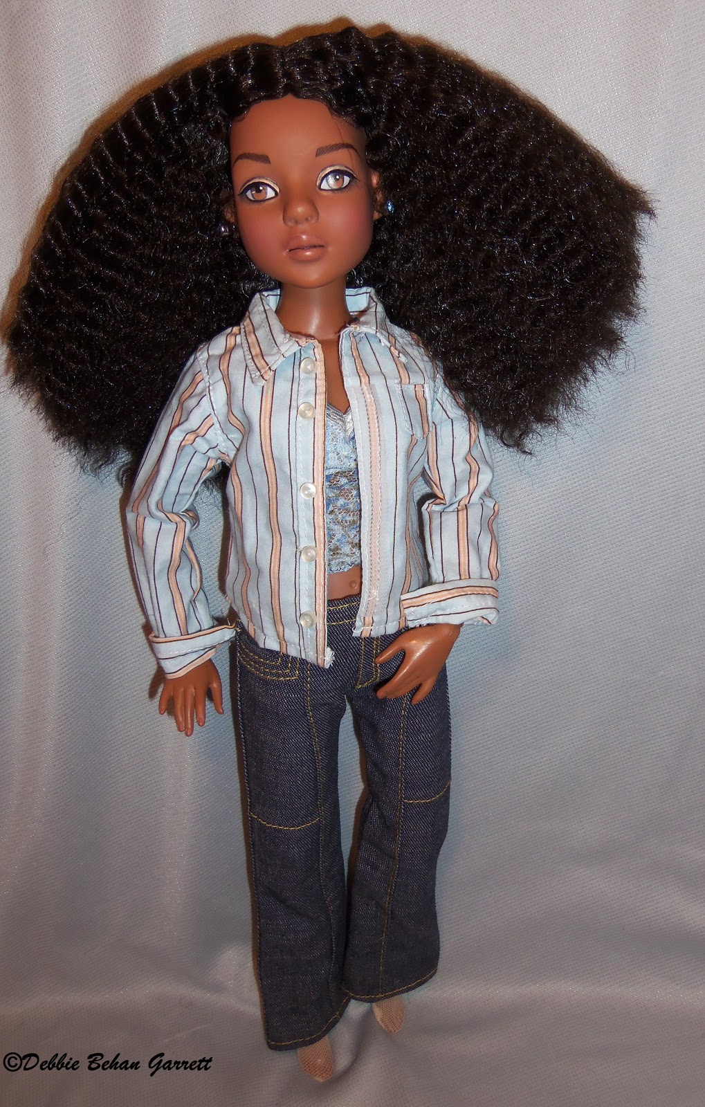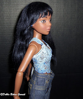 | Brushed out crimped wig, dressed in Teen Trends denim fashion |