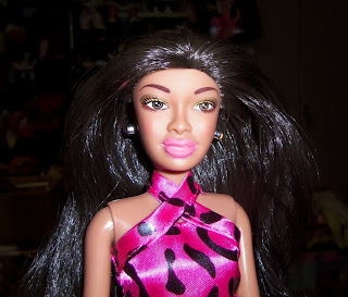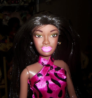 Based on online images of the actual doll, I wasn't too sure I would add Denise, friend of Fashion Madness Kenya, to my collection until seeing her in person. Even then, I still wasn't overly enthused about her hairline, the thinness of her lips, but particularly the too pale lip color that clashed with her appearance of white teeth.