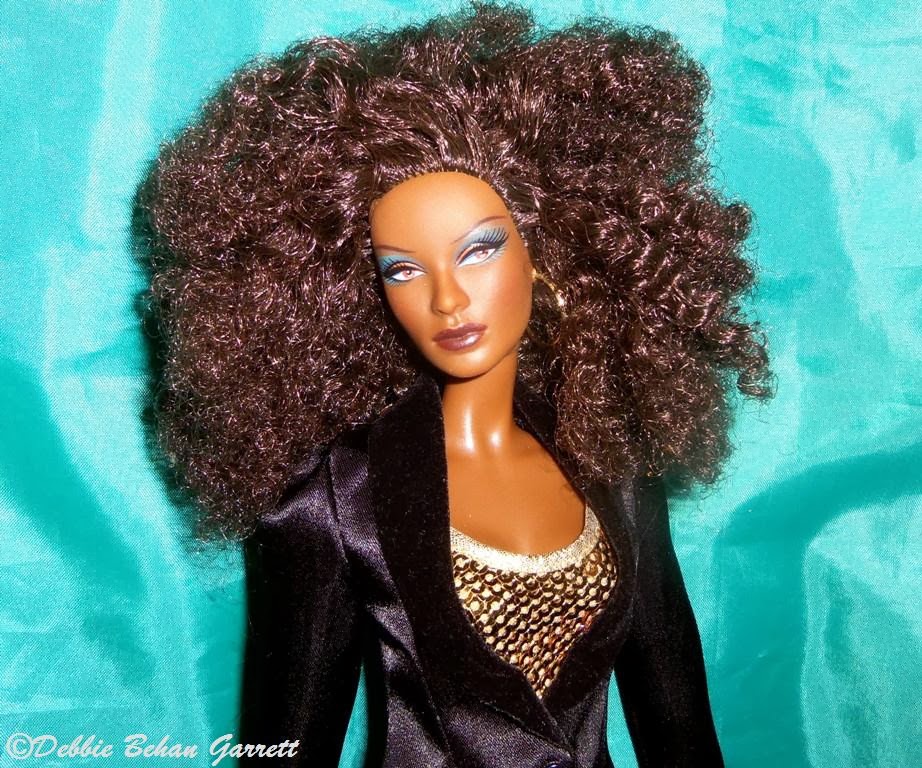 I spent approximately 10 minutes or less, finger combing Nikki's hair and shaping it into a curly style that closely resembles her original style. I did not wash it, I just used my fingers to remove the tangles, separate coils, and fluff it into shape. She still wears one of her original gold tone hoop earrings, which I incorporated into her new look.