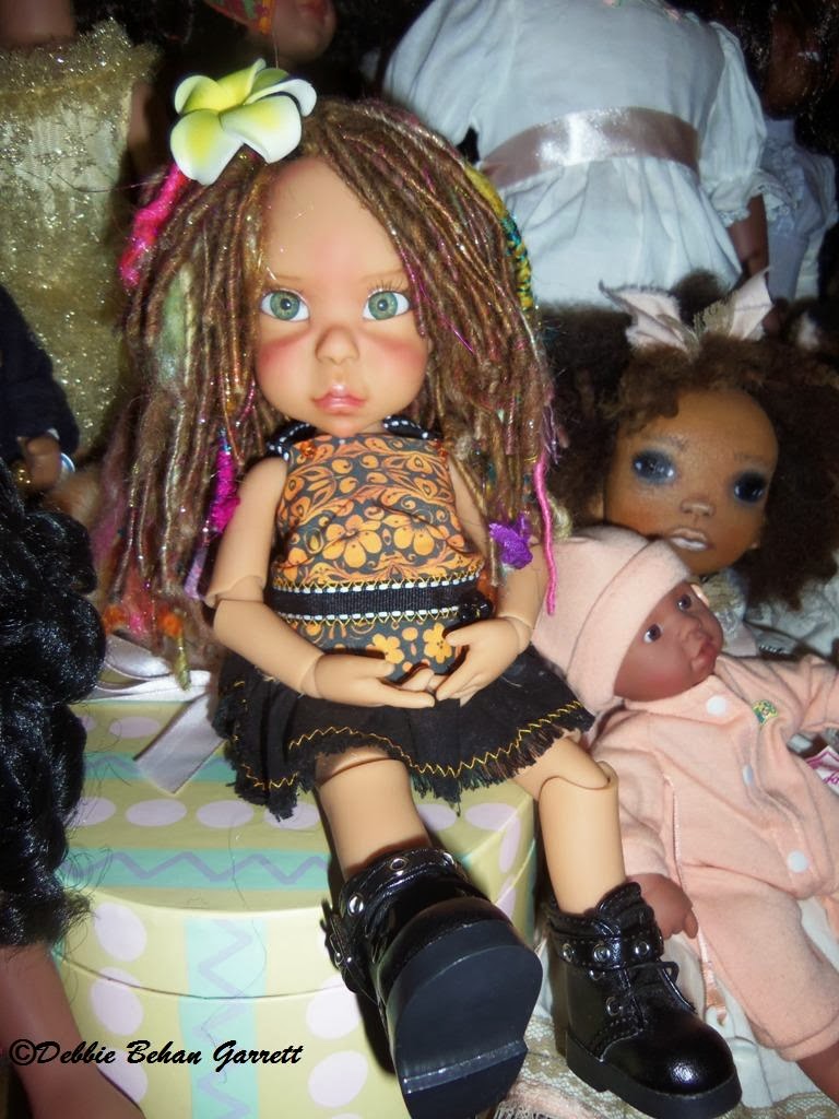 BJDs are generally priced outside my doll-buying comfort zone, but when I saw this spunky little girl with the multicolored dread locks being offered for sale, I asked the cost, which was affordable.  Having been part of Michelle's collection, I am delighted to now have her in mine.