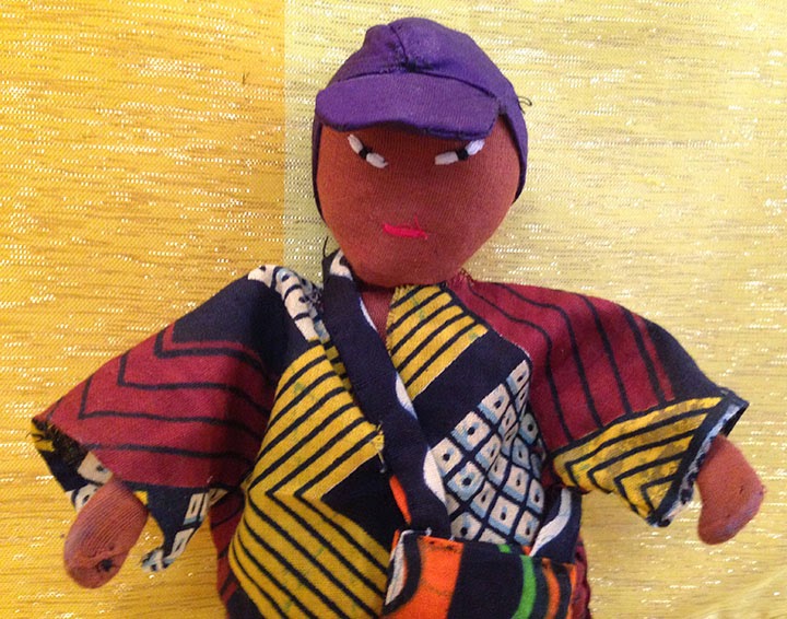 Always an elegant dresser, Madame Lo had never learned to sew because men do the tailoring and dressmaking in Senegal.  Making dolls was therefore a challenge but she rose to the occasion by asking a neighbor for tips and studying one of the dolls typically sold to tourists.